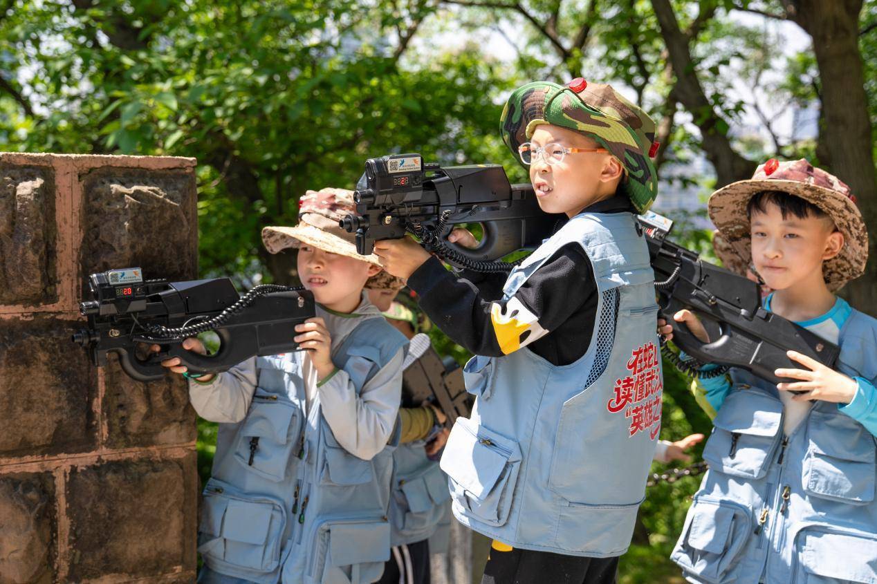 在卢立群旧居的沙盘前,孩子们组成“守卫小队”,辨别地势、布置防线,争抢制高点。