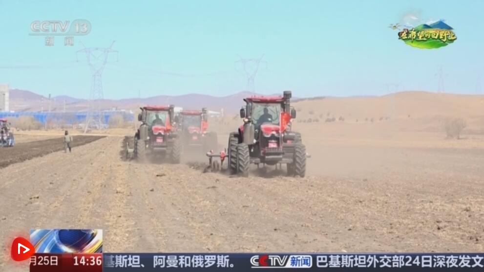 在内蒙古呼伦贝尔扎兰屯大河湾镇,一辆辆大型现代化农业机械在田间穿梭,经过深松、起垄、施肥、播种、铺设滴灌带等工序,高效推进春耕生产。