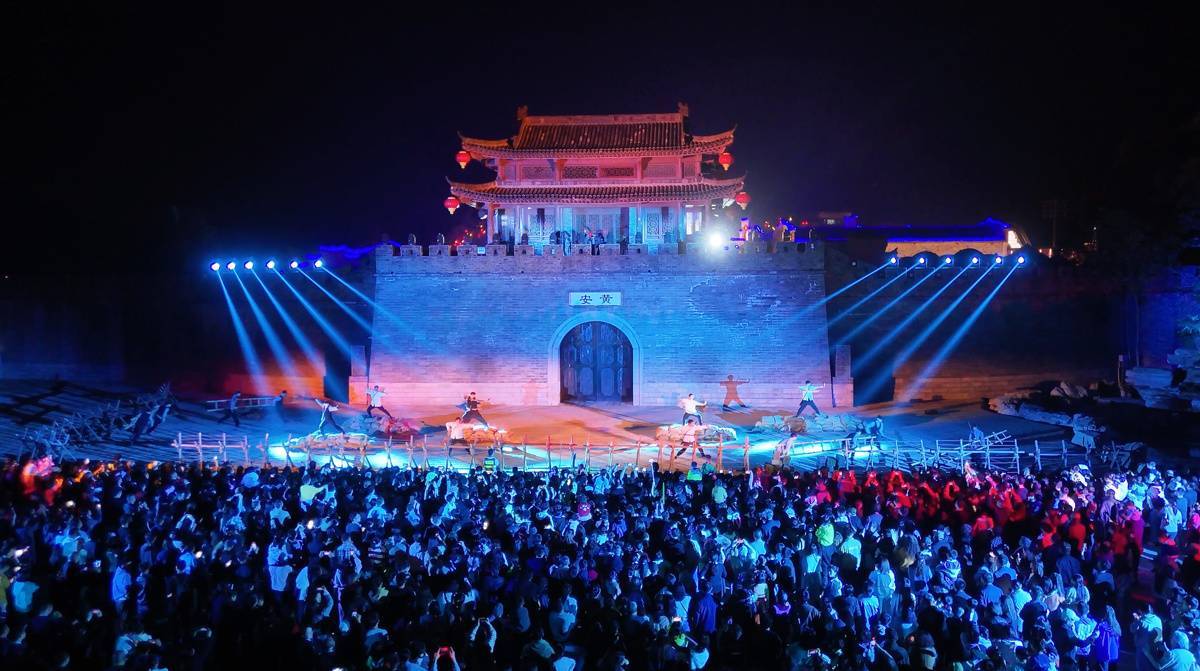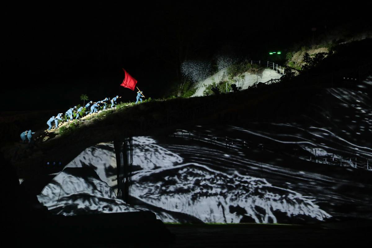 4月25日,《红安・红安》行浸式山水实景演出在红安影视幻城上演。(湖北日报通讯员 李游 汪伦 摄)