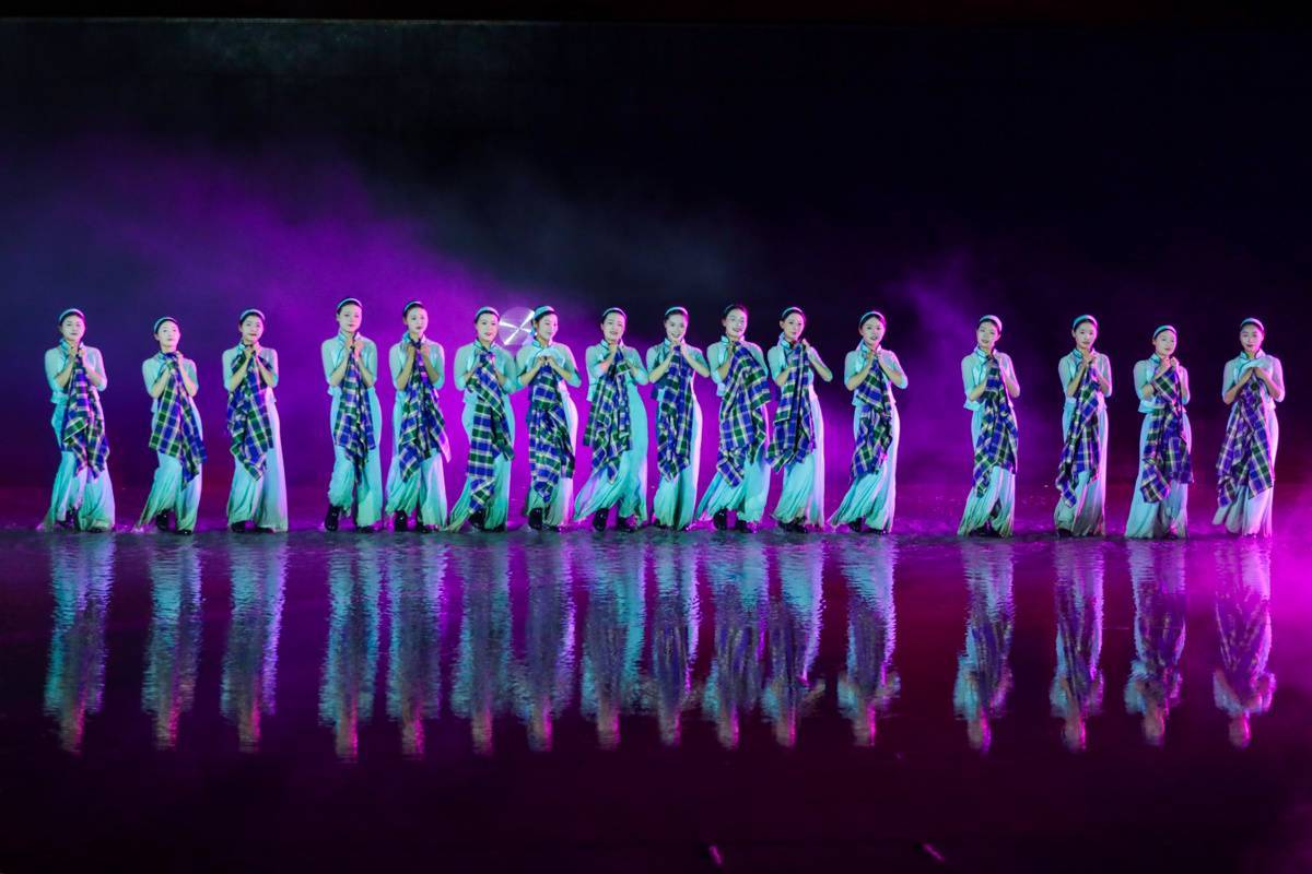 在专业演员的引导下,观众有序从第一幕的水景舞台移步至前门广场、黄安古城内城、月亮湾广场。这种独特的“行浸式”观演模式,打破了传统演出的静态观看方式,让观众成为历史的亲历者,在移步换景中感受革命岁月的波澜壮阔。