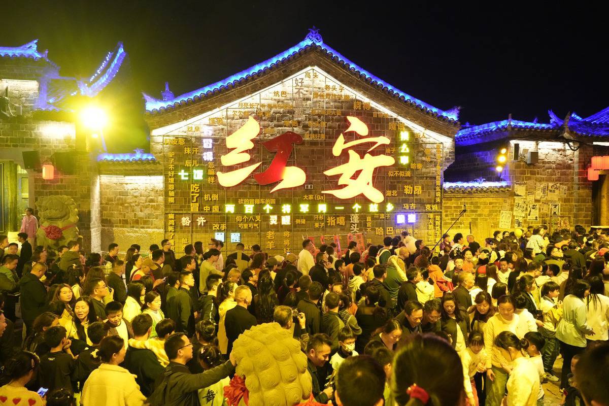 作为景区核心产品,《红安红安》由国内一线演艺编创团队倾力打造,以红安百年风云为脉络,依托实景地貌与200 余名专业演员,采用创新行浸式观演模式,通过四大场景沉浸式切换,带领观众从“黄安”走进“红安”,穿越时空重温革命烽火岁月,亲历这片土地的荣光与变迁。该剧定位夜间核心演艺,打破“白天看景、晚上离场”的传统文旅模式,上演以来累计接待游客超150万人次,营收近1500万元,直接带动餐饮、住宿、商超、文创等业态蓬勃发展,节假日“一房难求、一桌难寻”,民宿与特色商户营收翻倍,不仅形成“演艺引流、商业聚气”的良性生态,更带动群众就近就业,让红色文旅真正成为富民兴县的金色产业。