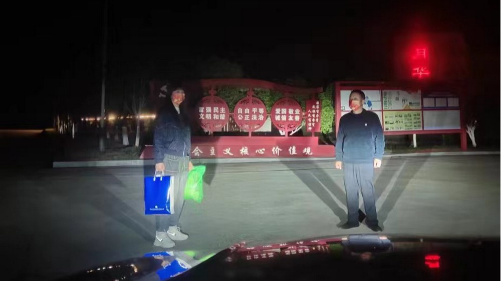 图为:夜晚10:00,镇人大代表、梅铺社区党支部书记徐汉东送时空伴随者到集中隔离点集中隔离。通讯员 供图