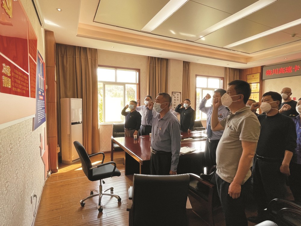 图为:梅川高速卡口成立临时党支部,程炽金代表宣誓成为临时党支部书记。通讯员 供图