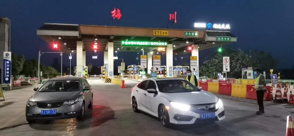 图为:凌晨2:00梅川高速口,值守人员坚守岗位。通讯员 供图