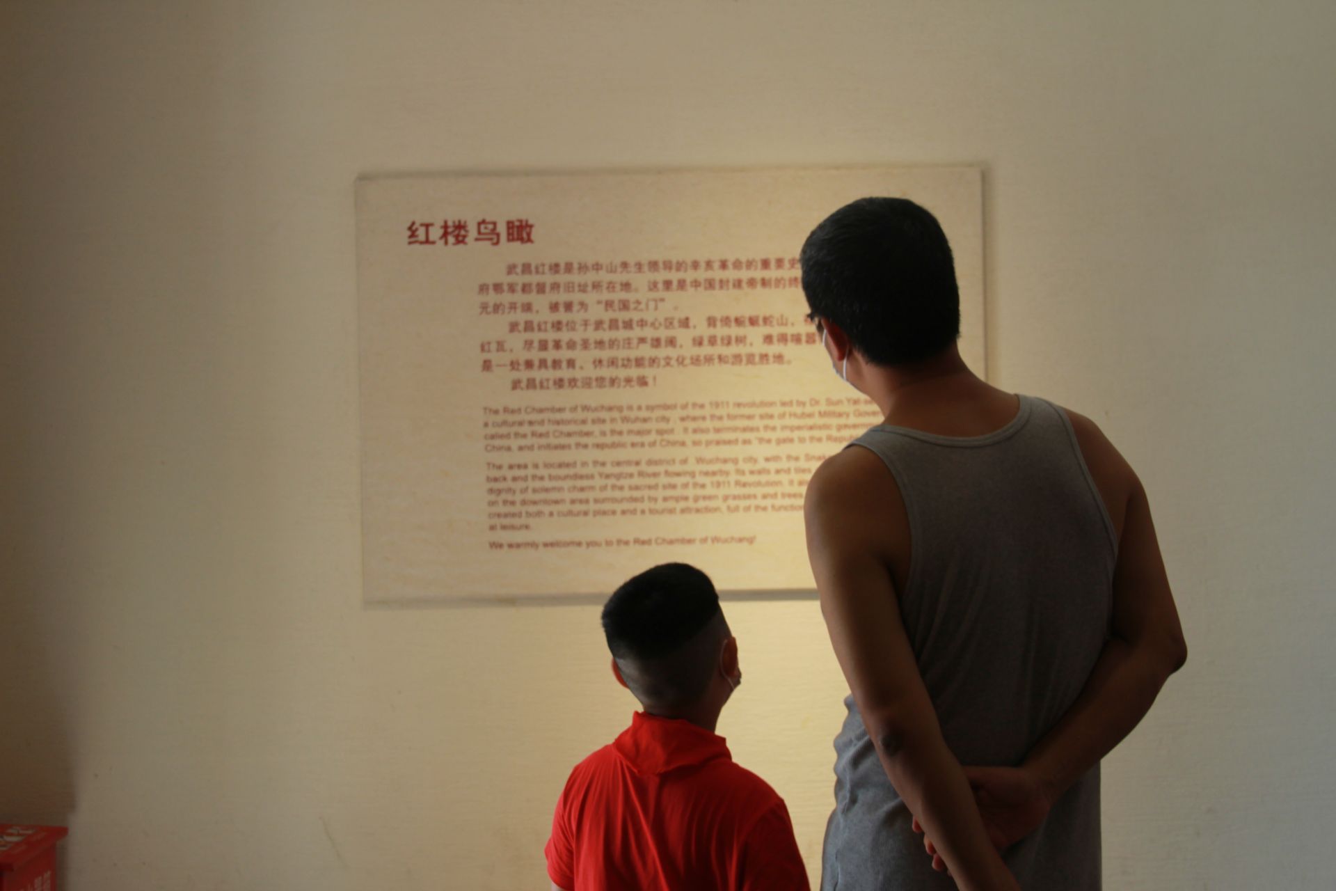 一位父亲带孩子参观辛亥革命博物院并细致讲解。摄影 蒋淑娴