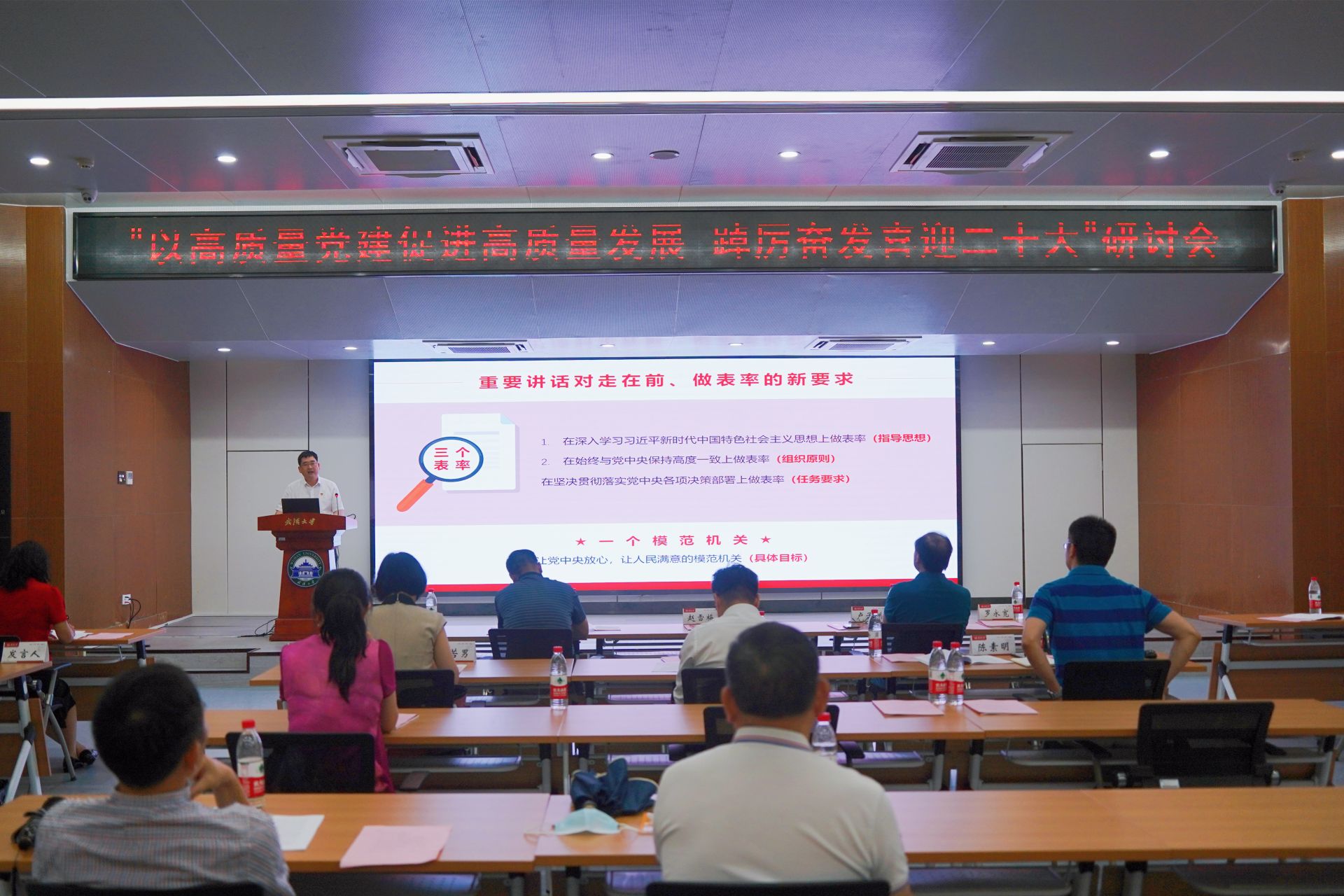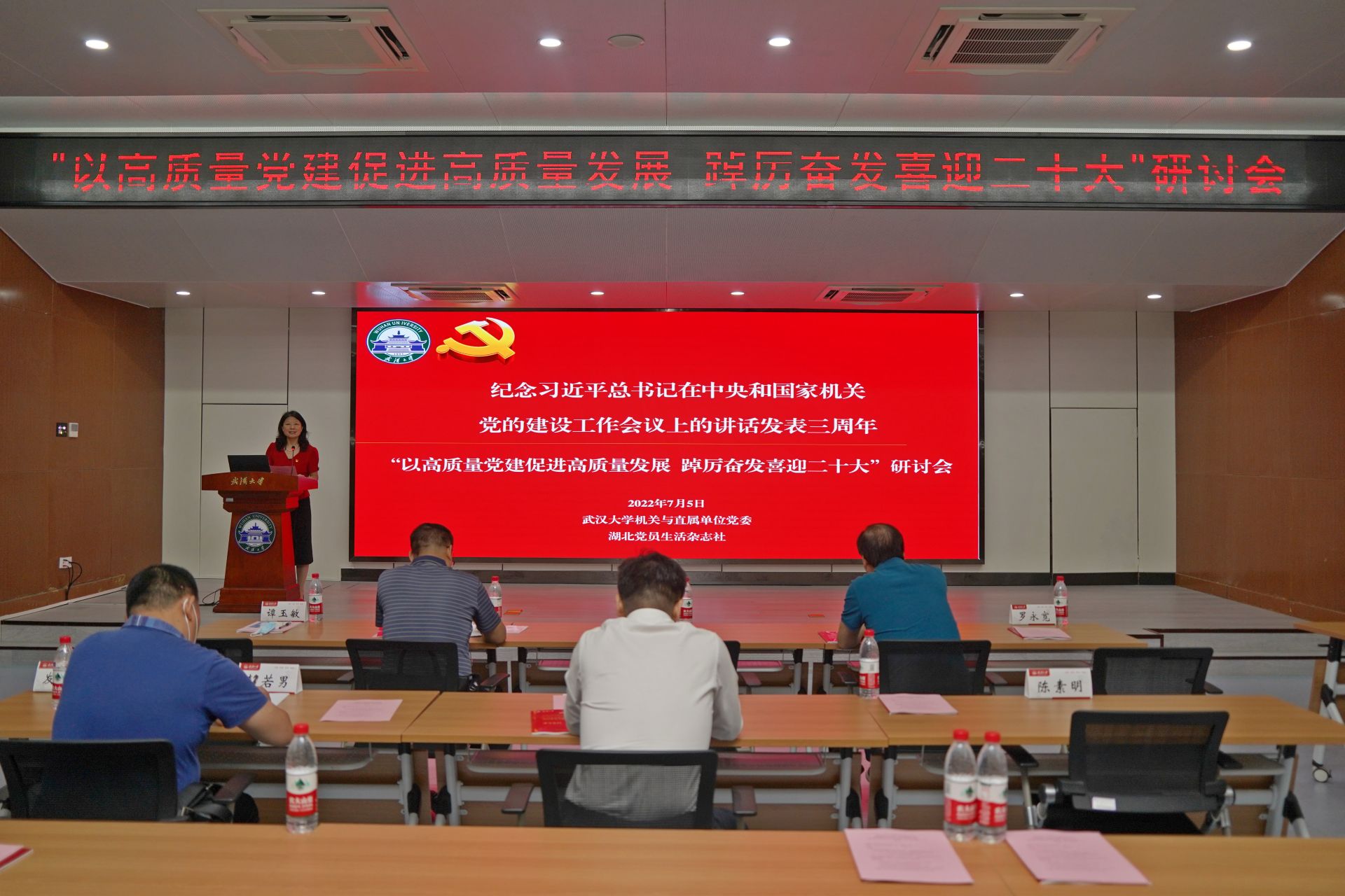 荆楚网(湖北日报网)讯(通讯员 蔡恒 摄影 曹海钢)7月5日,武汉大学举办“以高质量党建促进高质量发展 踔厉奋发喜迎二十大”研讨会——纪念习近平总书记在中央和国家机关党的建设工作会议上的讲话发表三周年。此次活动由武汉大学机关与直属单位党委和湖北党员生活杂志社联合主办。