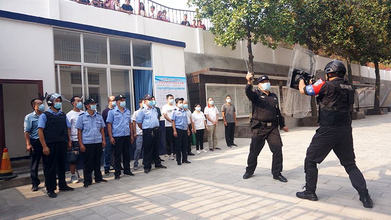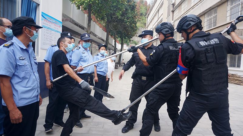 特警现场示范盾牌防护等工具的使用技巧。通讯员 供图