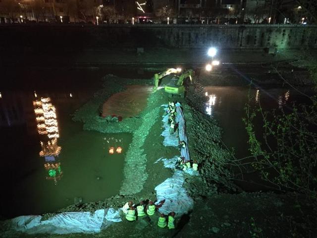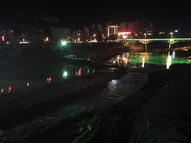 湖北日报讯(记者林晶)“轰轰轰……”3月15日晚上9时许,恩施市民族广场处的江面上,机器轰鸣,近20余辆挖掘机、渣土车紧张作业,将清江河道分为围堰区和放水区。这般大动作,吸引了众多好奇市民围观、拍照。