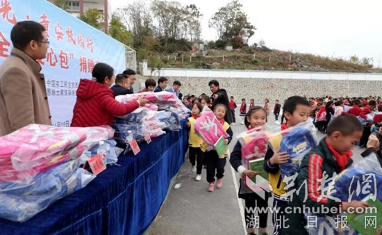 白杨坪中心小学位于恩施城区30余公里外,和很多山区学校一样,该校学生有一半以上是留守儿童。15日下午,初冬的微风中,孩子们在老师的带领下兴冲冲地排好队伍,一场简短的捐赠仪式开始。这是由恩施州助学扶贫促进会、中国农工民主党恩施州委员会、恩施州妇女联合会、恩施州工商业联合会(总商会)共同发起的“七彩阳光·童安校园行”公益慈善捐赠活动,当日由湖北和诺生物工程股份有限公司向孩子们捐赠智能安全书包和安全丛书。