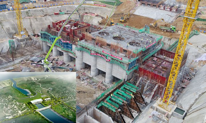 作为湖北国际物流核心枢纽花马湖水系综合治理近期工程之一,该站设计流量75立方米/秒,将安装6台立式全调节混流泵,单机功率达到2000KW。目前,主泵房结构已具备设备安装条件,预计前期有2台混流泵在5月31日前完成安装并进行调试,在达到通水条件的同时,于7月底完成另外4台混流泵的安装,确保汛期安全。