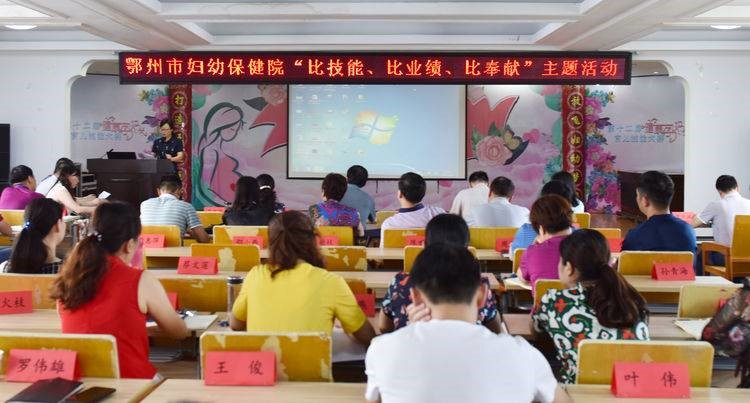 6月25日,为贯彻落实《市卫健系统深入开展“服务对象是亲人”、“一季一主题”教育实践活动实施方案》精神,纪念建党98周年,院党总支组织开展“比技能、比业绩、比奉献”主题活动。市妇幼保健院领导班子成员、97名党员干部参加了本次活动。本次活动由院长王进主持。