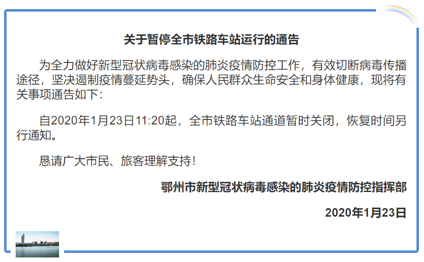 鄂州铁路车站暂停运行
