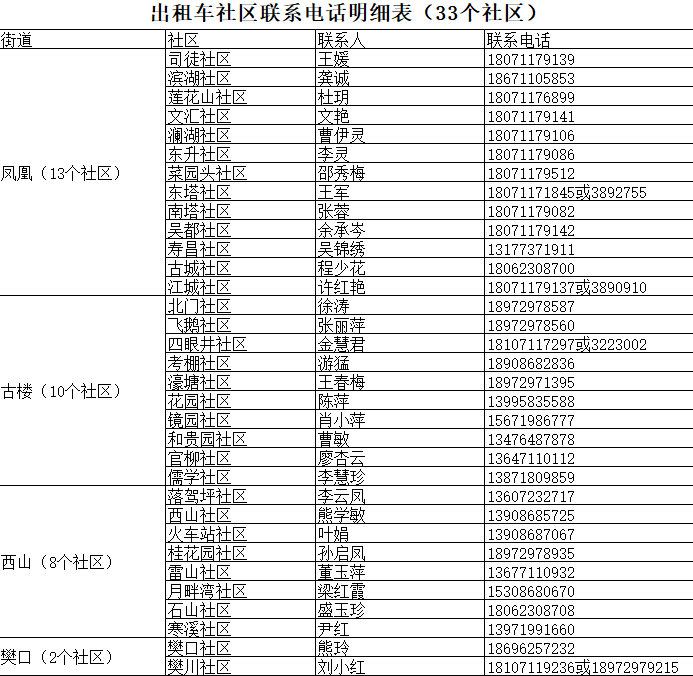 扩散!鄂州市出租车社区联系电话明细表(33个社区)