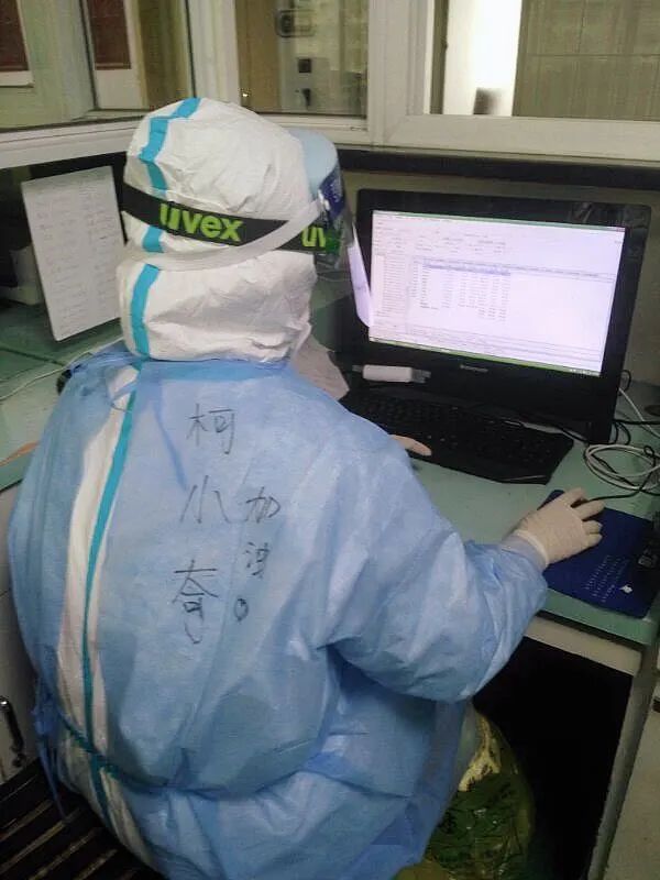防护服很笨拙,穿在身上,你会马上变成一个机器人,就算想轻轻地转一下头或者想瞄一眼都不行,你总得来个全身转动,我们就互相笑对方说:你就是一个机器人!每个从隔离病区出来的护士,脱了隔离服,头发都是湿的,额头也都是汗珠,一身疲惫却依然相互鼓励和安慰,大家都尽己所能,想多为科室和同事做些什么。