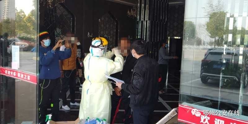近日, 鄂州市公安局出入境管理支队民警杨平联合市外办工作人员、市中心医院医生对居住在鄂州的肯尼亚籍人员进行医学核酸检查。