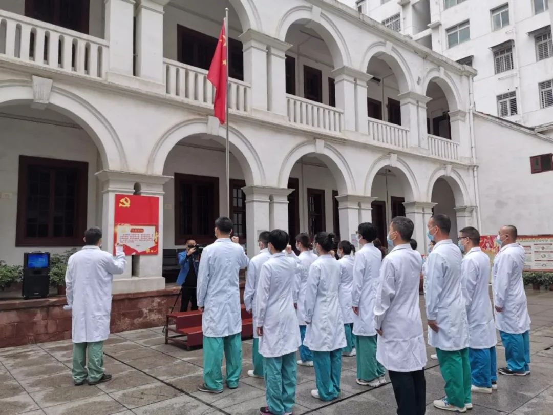 同日下午,北大医疗援鄂医疗队临时党支部在贺龙军部旧址纪念馆举行重温入党誓词并参观旧址,医疗队7名党员及19名入党积极分子参加。
