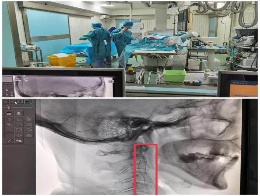 5月29日上午,鄂州市中心医院神经内科介入团队经过周密的术前评估与讨论,为一名66岁颈动脉狭窄伴脑梗塞的女性患者开展了颈内动脉球囊扩张加支架植入术。