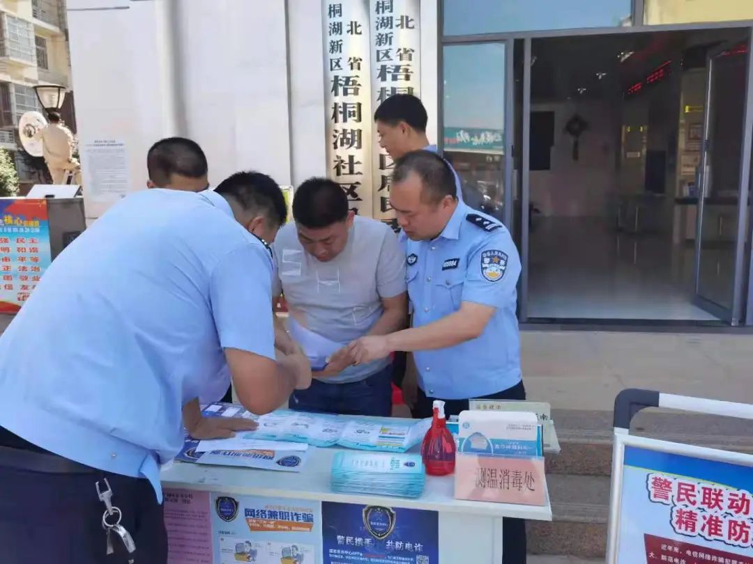 为进一步提高社区群众的防诈骗意识,降低辖区诈骗案件发案率。6月23日,梧桐湖派出所副所长张武,顶着烈日,带领辅警尹苗、商嘉文、黄恩等人,到梧桐湖社区开展防诈宣传。