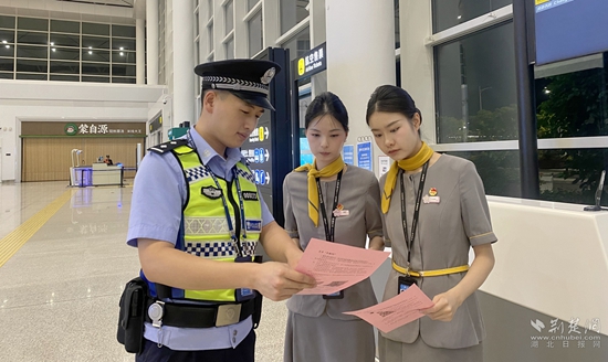 民警向机场航站楼客服宣传安全知识。通讯员 供图