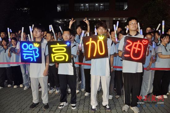 荆楚网(湖北日报网)讯(通讯员 邱新文)5月5日晚,鄂州高中教育集团鄂高校区举行了一场别开生面的“喊楼快闪”活动,为距离高考仅剩32天的高三学子加油鼓劲。此次活动以“破茧·追光”为主题,融合传统与潮流,吸引了高一、高二师生代表的积极参与。