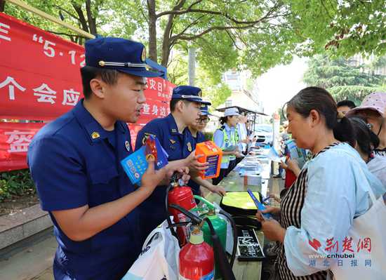 荆楚网(湖北日报网)讯(通讯员 陈荣 胡杰)今年5月12日是第17个全国防灾减灾日,主题为“人人讲安全、个个会应急——排查身边灾害隐患”。为切实增强群众防灾减灾意识,提高避灾自救技能,5月12日上午,鄂州市消防救援支队葛店大队联合辖区住建、市场监管、交警大队等部门开展了“5.12”防灾减灾主题宣传活动。