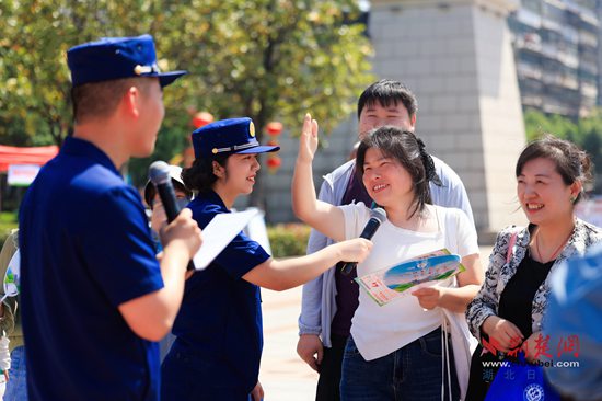 “室内起火,关门快跑;室外起火,关门防烟。”在消防安全“充电站”前,市民们一边领取定制的消防知识折页和蒲扇,一边听消防宣传员讲解家庭隐患排查技巧、夏季防火知识、火场逃生的“正确姿势”等常识。现场开展有奖问答,观众拿着消防员卡通钥匙扣直呼“实用又好玩”。