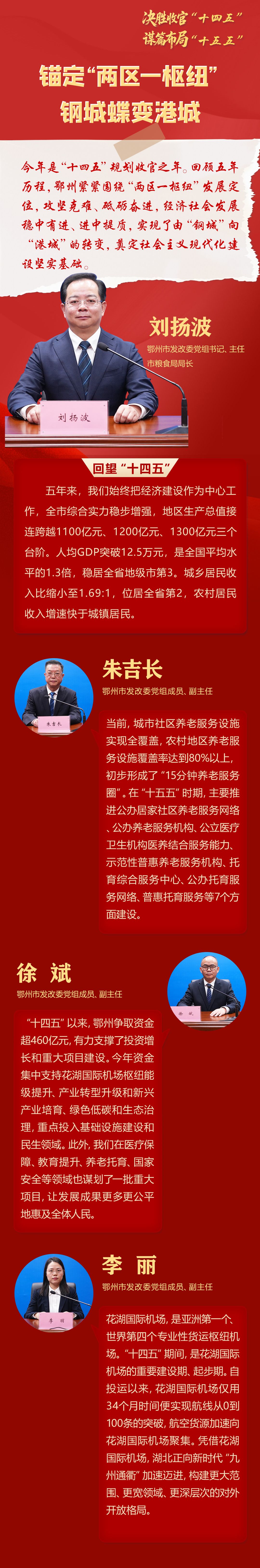荆楚网(湖北日报网)讯(记者 刘璐 阮琼 通讯员 胡彦)11月6日,鄂州市召开“决胜收官‘十四五’ 谋篇布局‘十五五’”系列主题新闻发布会。鄂州市发改委围绕鄂州市“十四五”规划实施情况和主要成就进行专题发布。