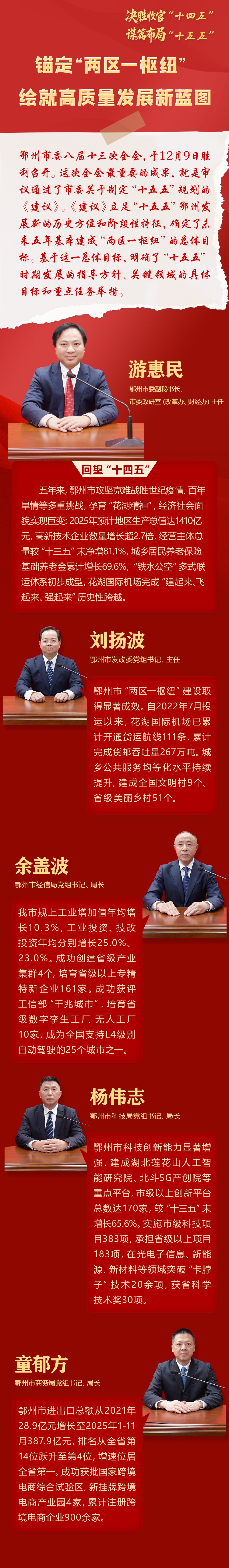 荆楚网(湖北日报网)讯(记者 金康 刘璐 通讯员 陈稳定 胡彦)12月11日,鄂州市召开新闻发布会,解读中共鄂州市委八届十三次全会精神,重点把握该市如何锚定“两区一枢纽”,绘就高质量发展新蓝图。