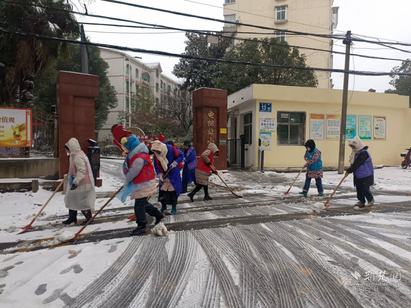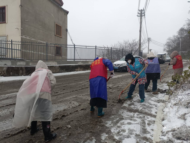 荆楚网(湖北日报网)讯(通讯员 万俊)1月19日,雨雪天气,道路积雪结冰。鄂州市樊口街道各级妇联组织以雪为令,迅速召集巾帼志愿队伍,开展扫雪除冰志愿服务行动,为寒冬群众出行筑牢安全防线。