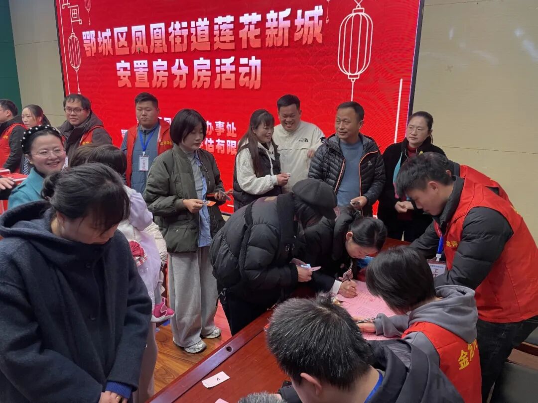 3月8日上午,鄂州凤凰街道莲花经联社九组(渡口地块)征收项目莲花新城安置房首批分房仪式在莲花小学举行。来自莲花九组的47户被征收户迎来了期盼已久的新居分配时刻。