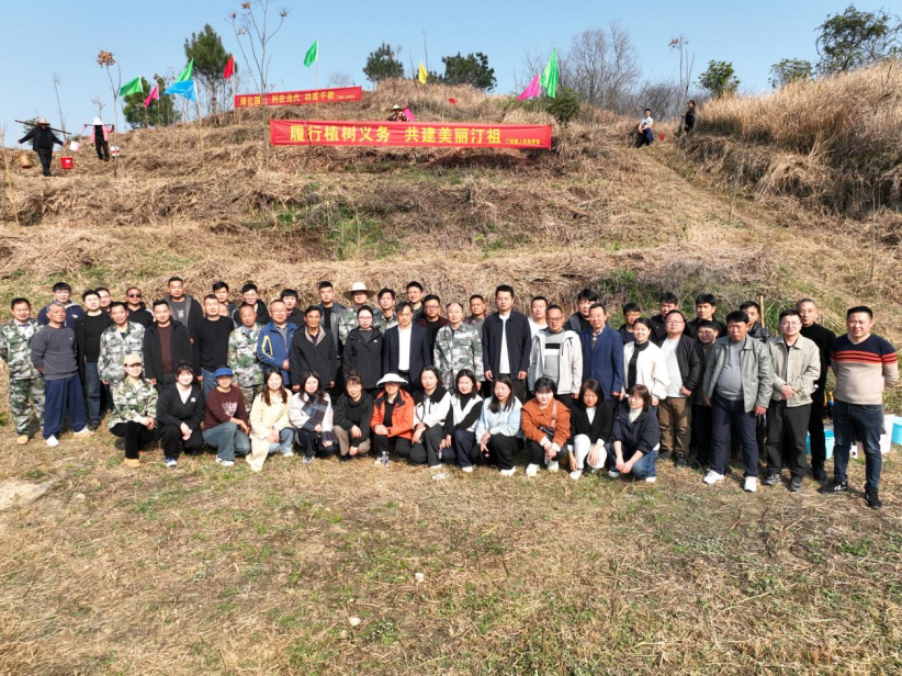 汀祖镇组织机关干部80余人,在洪山村和田山开展义务植树活动。共栽种楠树1000棵,南酸枣树苗200棵,樟树200棵,累计完成绿化面积20余亩。陈夏林 摄