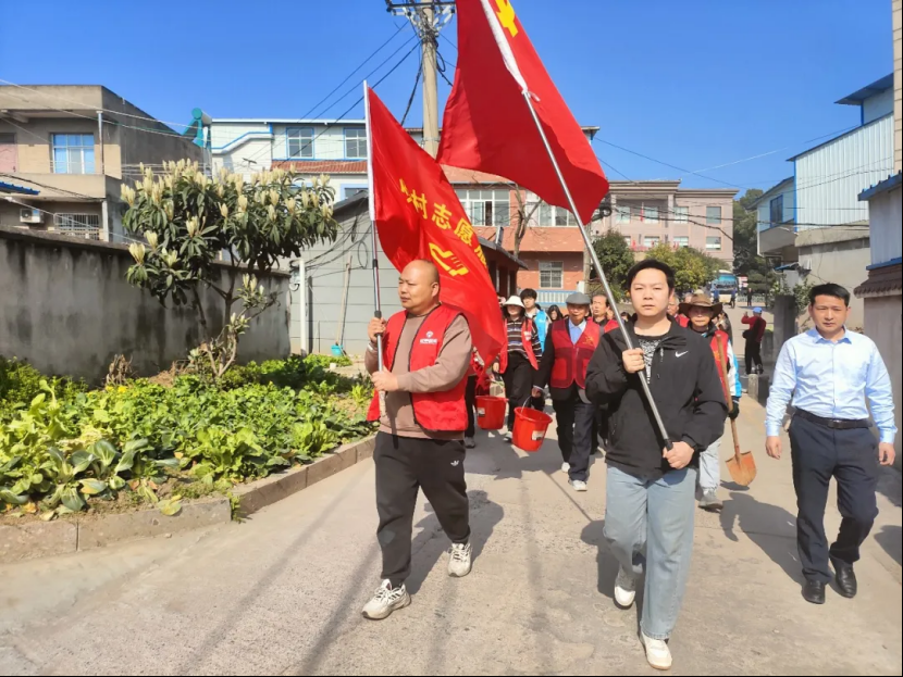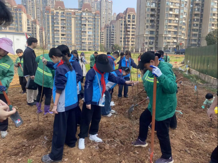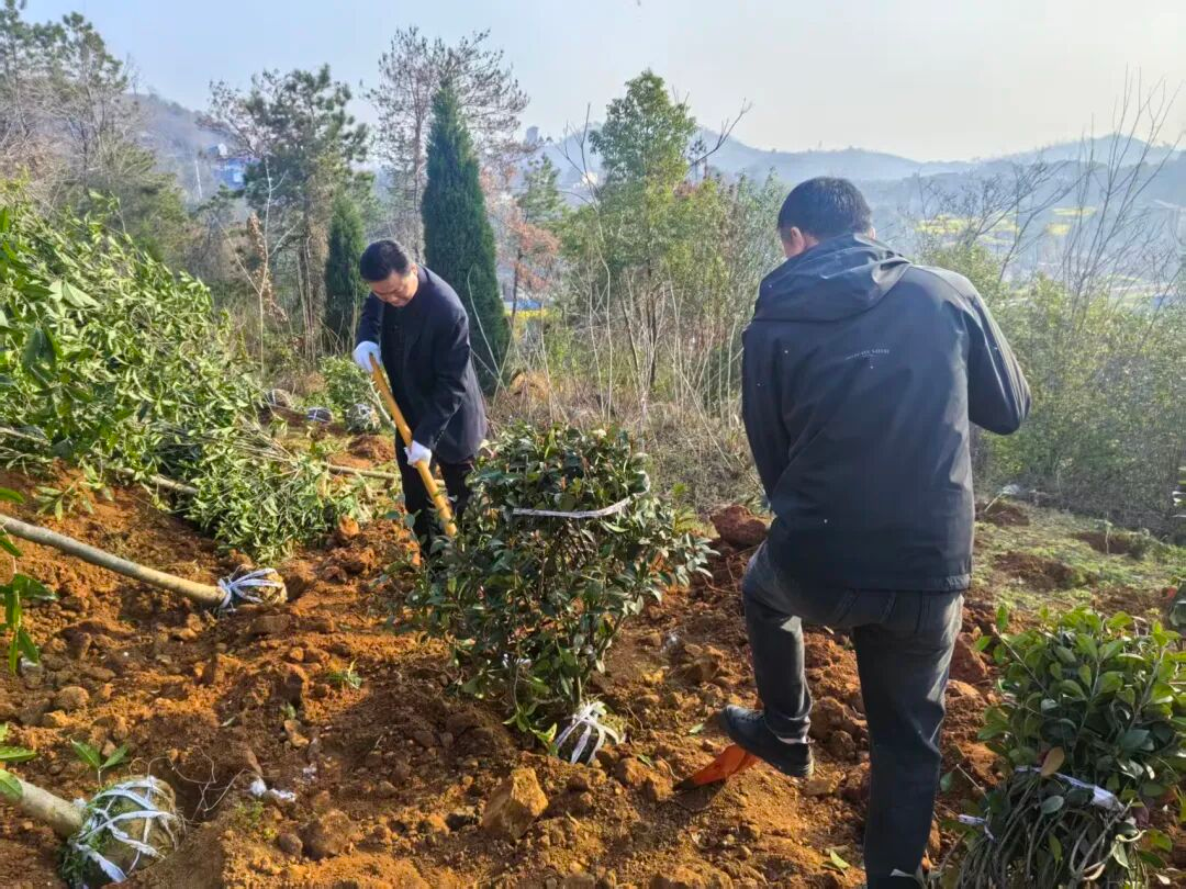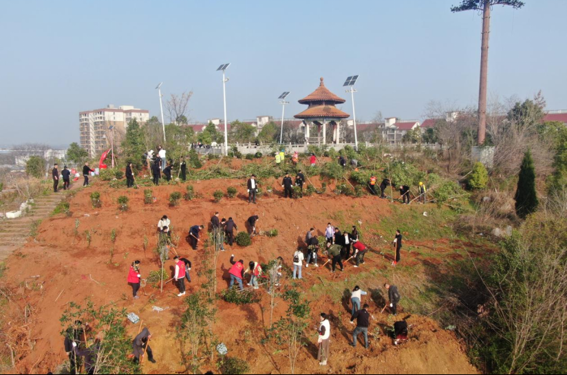华山村党总支联合镜园社区党委、中心街社区党支部、大兴联运党支部、鄂州职业大学青年志愿者协会,共同举办了“镜”绣年华栽新绿 村社同心沐春风——双向奔赴筑绿家园植树节活动,现场值树100余棵。刘家亮 摄