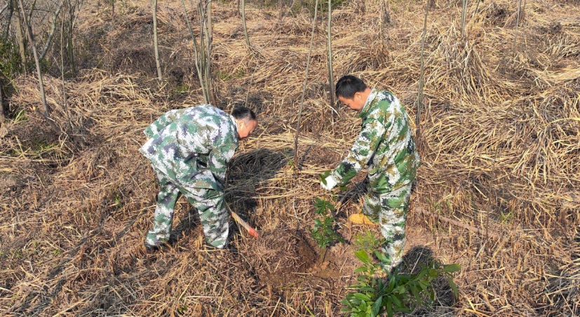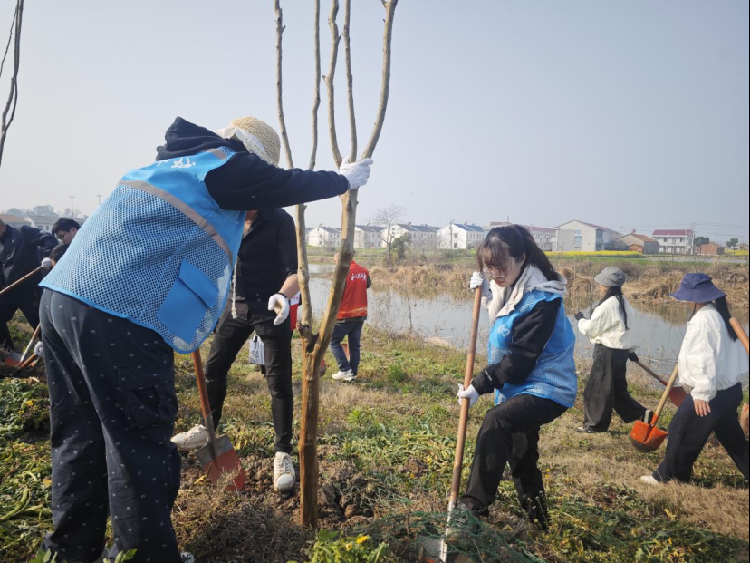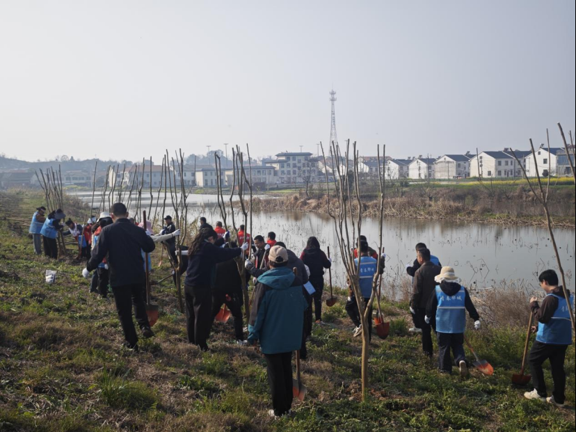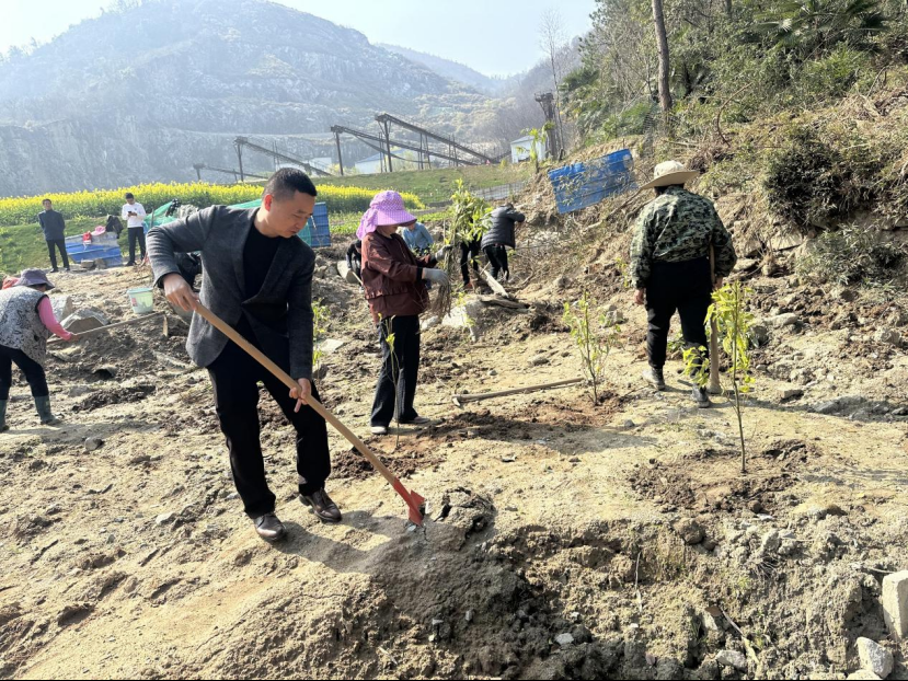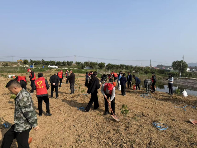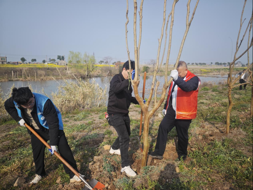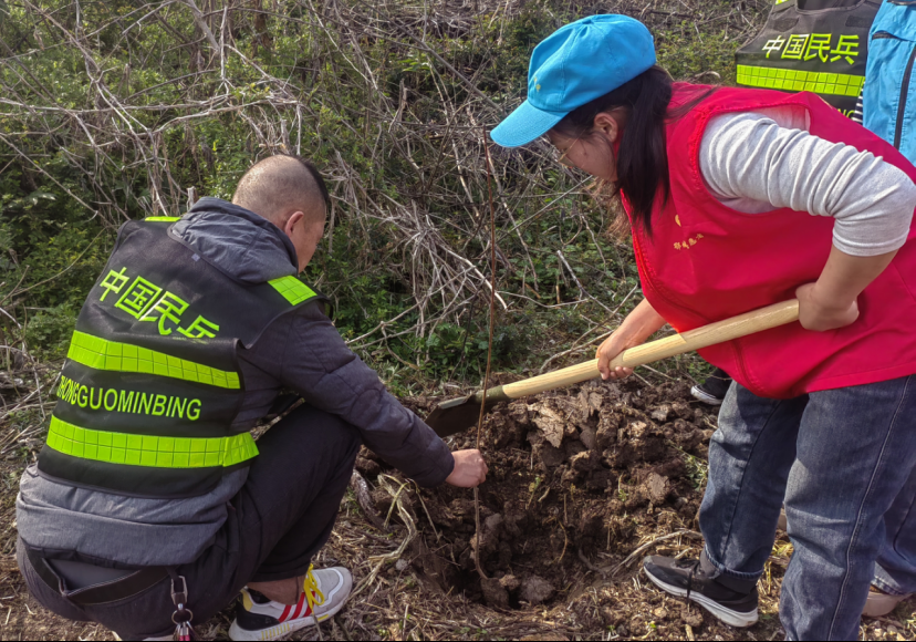 高沟村联合儒学社区党委、汀祖镇董胜村,在董胜村开展“青春建功添新绿·村社同心向未来”植树活动。喻丹凤 摄