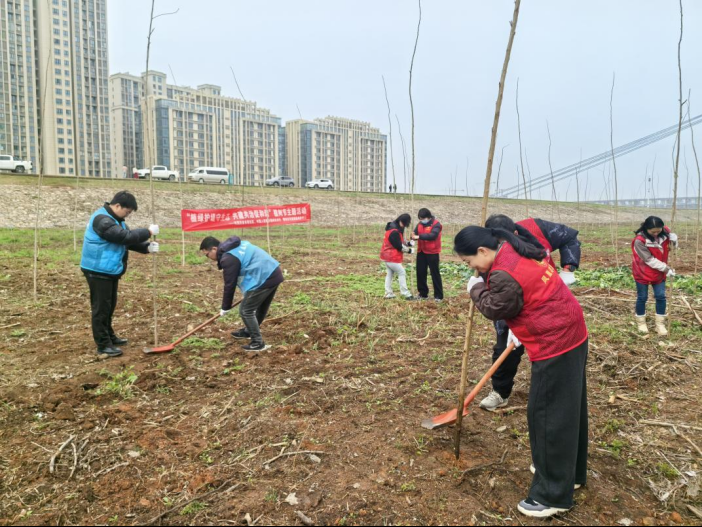 东塔社区携手中国人民银行鄂州市分行、市河道堤防保护中心党员干部、志愿者20余人,在燕矶堤防段开展以“植绿护堤守生态,共建共治促和谐”为主题的植树节志愿服务活动。程苑灵 摄