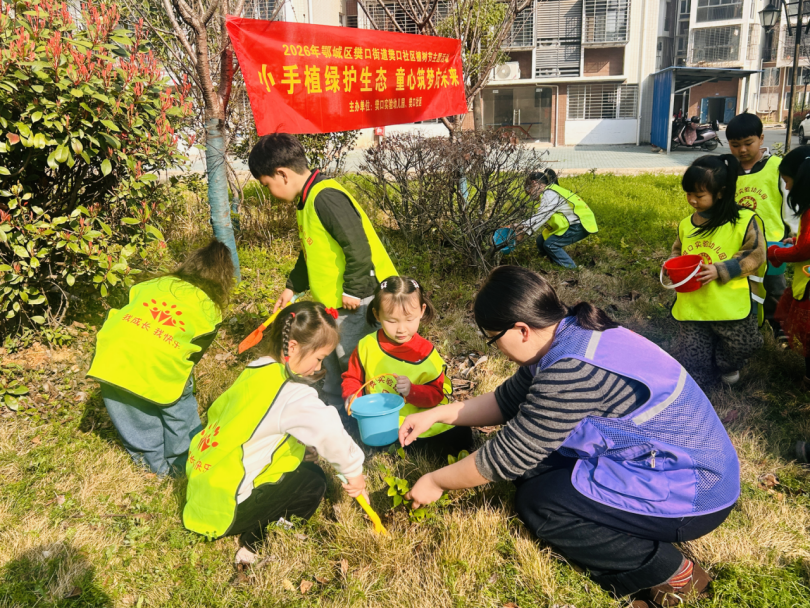 樊口社区携手樊口实验幼儿园,开展“小手植绿护生态,童心筑梦向未来”主题活动。周婷 摄