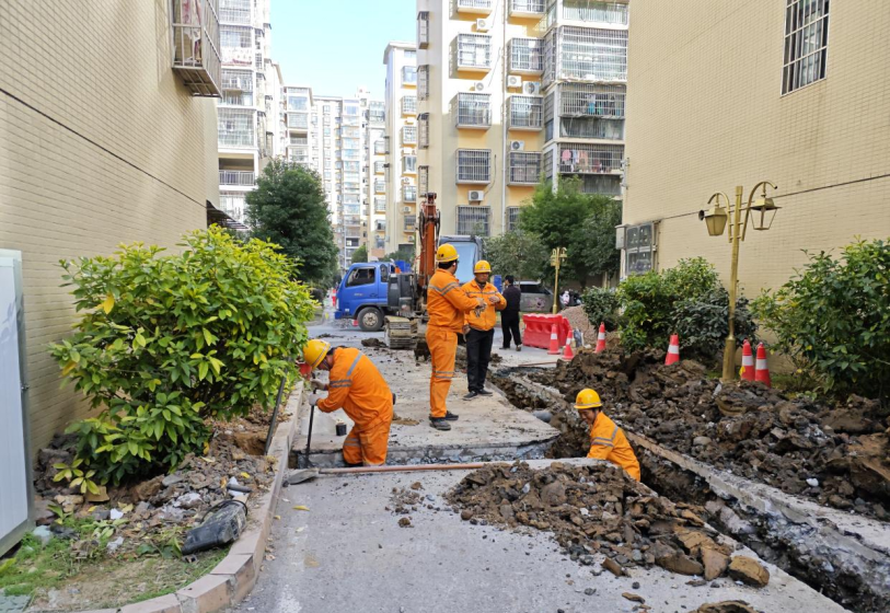 天然气改造二期管网施工现场,工人正在进行管道铺设,一季度完成入户置换改造3000户,让群众用上“放心气”。陈颖 摄