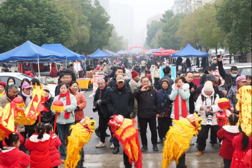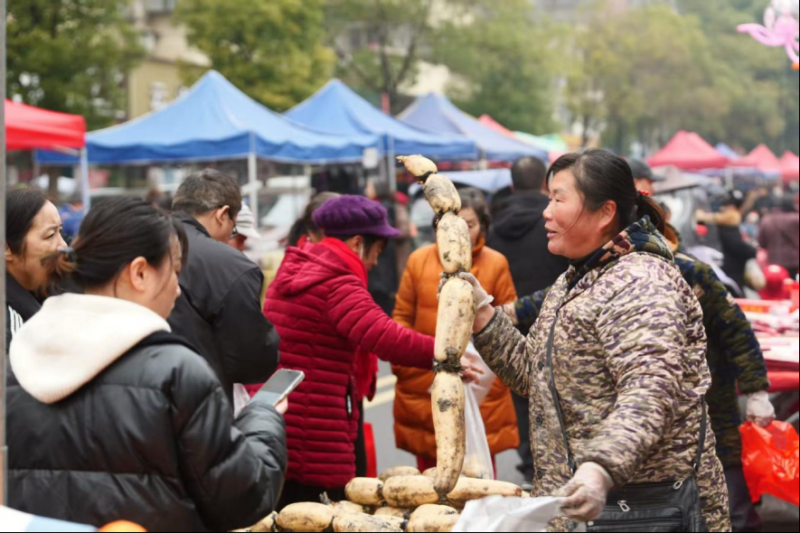 1月26日,腊八节年货集市活动吸引近200个摊位、上万群众参与,三地居民共品年味。杨娟 摄
