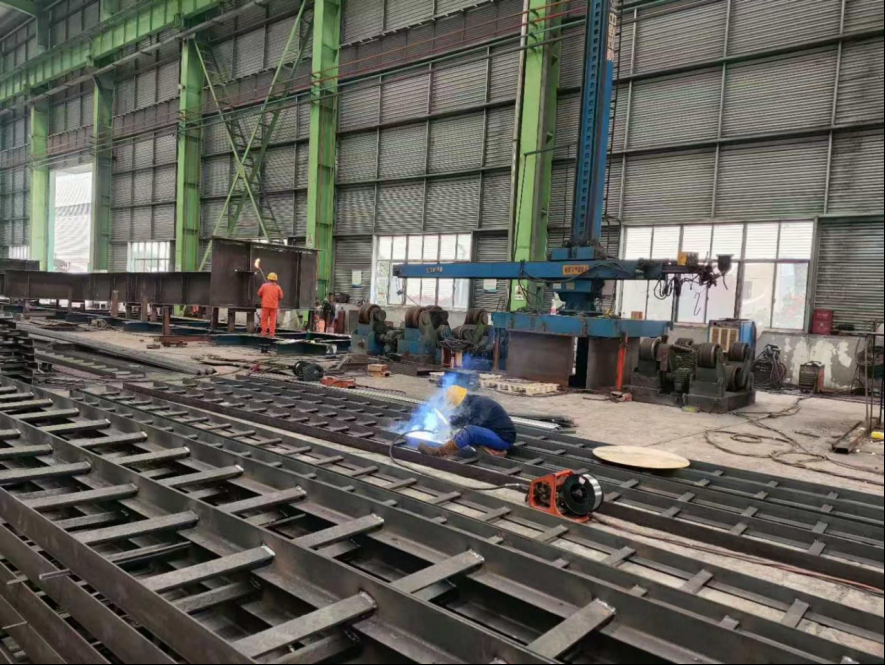 湖北鄂州长江容器机械厂生产车间内,焊花四溅,工人加紧赶制桥梁钢结构和压力容器订单。陈雨洁 摄