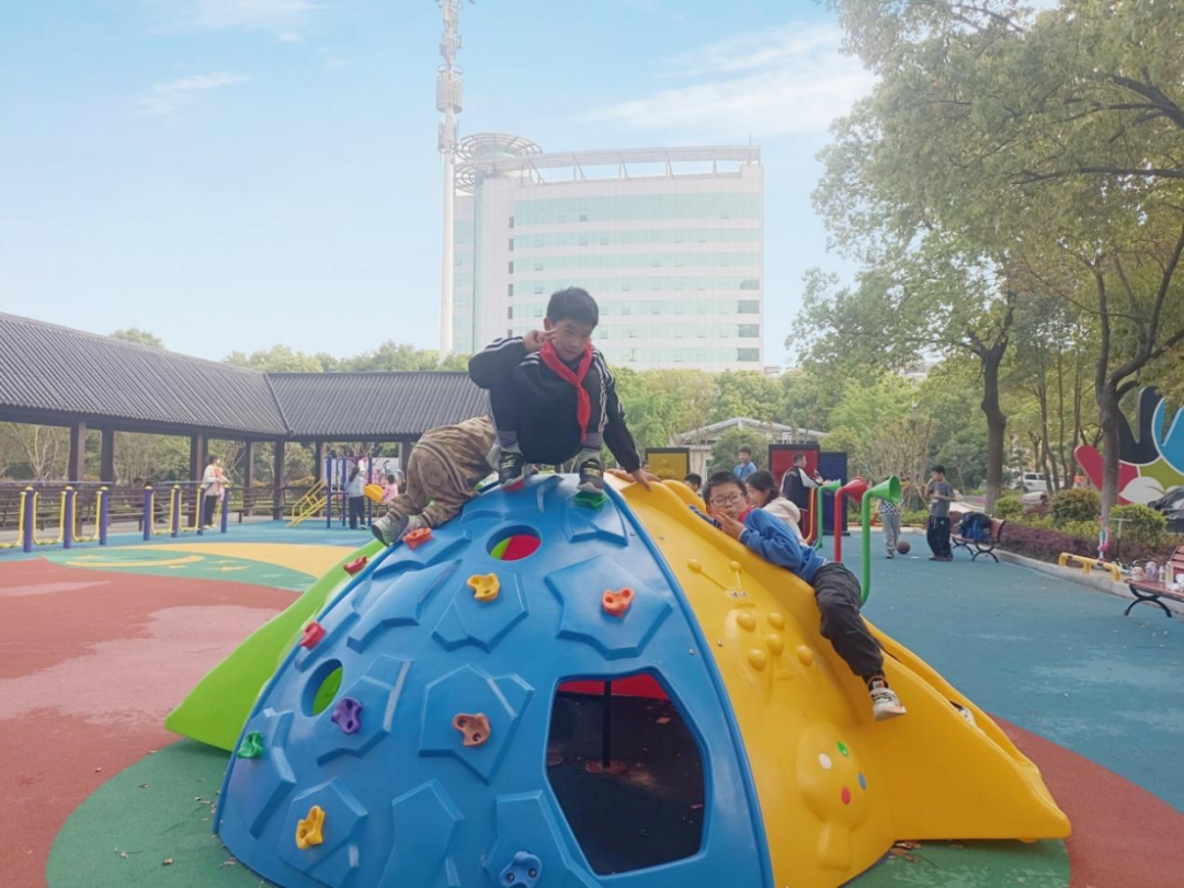 新改造完工的花园广场整洁美观、设施齐全,成为居民休闲娱乐的新去处,小朋友们在广场上愉快玩耍,尽情享受惬意时光。周旋 摄