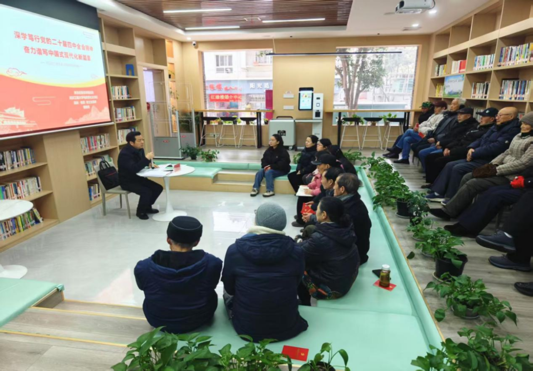 武汉工程大学马院院长曹胜亮到四眼井社区宣讲党的二十届四中全会精神。金林 摄