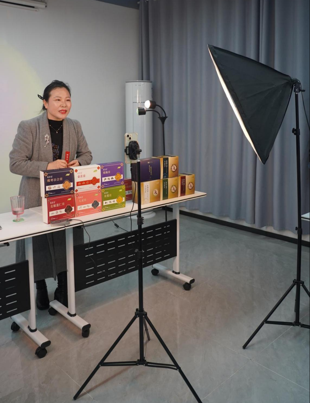 湖北数智科创公司高级电子商务师卢琴在进行电商直播演示。李微 摄
