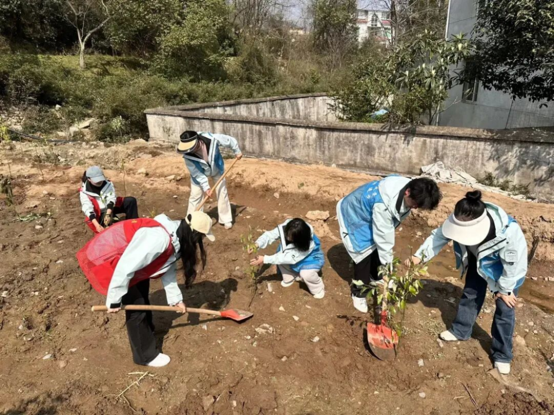 儒学社区开展“青春建功添新绿·村社同心向未来”活动,现场大家分工协作、扶苗培土。徐佳雨 摄