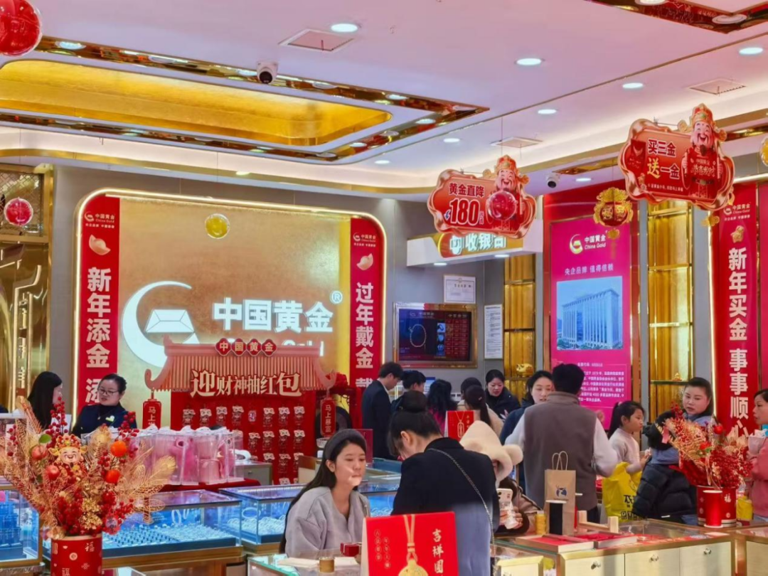 南浦国际广场中国黄金门店内,新年黄金促销活动火热,消费热度高涨,选购黄金的顾客络绎不绝。王婉琴 摄