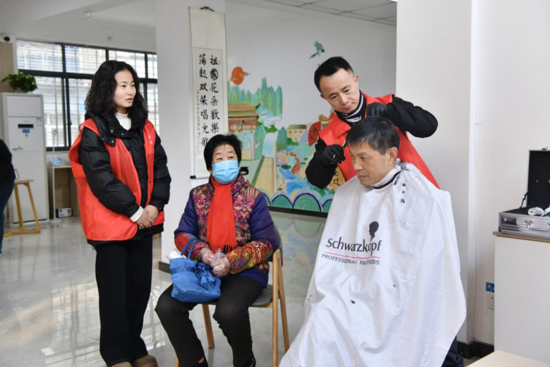 考棚社区精心组织义剪志愿服务活动,邀请专业理发师免费为居民理发,用贴心服务解决居民实际需求。王奕晨 摄