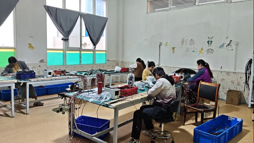 3月25日,知一电子厂生产车间内,工人们争分夺秒赶制订单,为村民提供多个就业岗位。朱振宇 摄