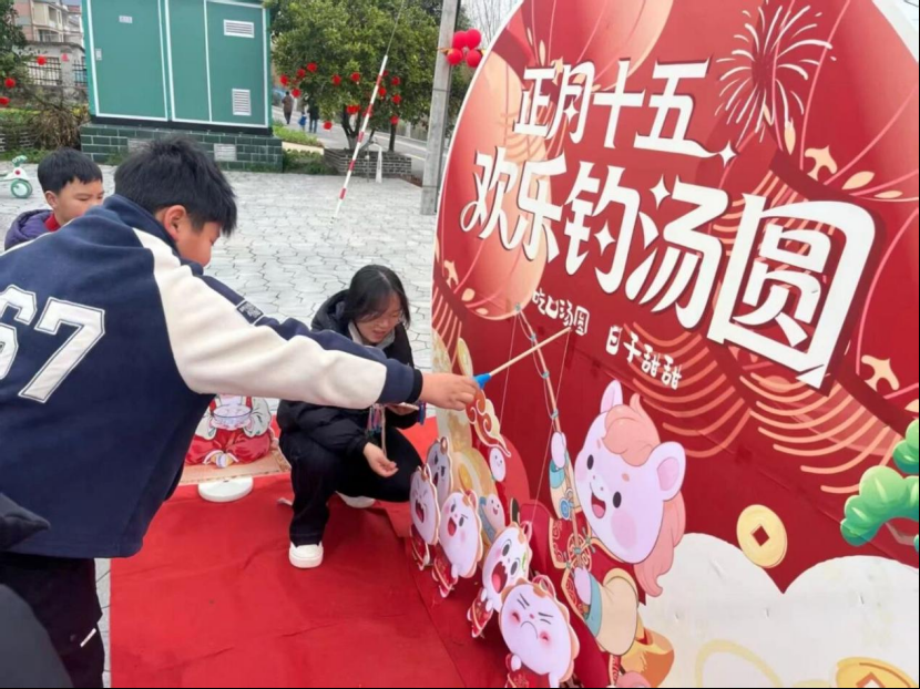3月3日,为庆祝元宵佳节,峒山村开展趣味猜灯谜、钓元宵等活动。陈琳 摄