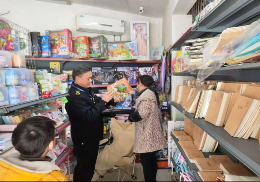 杜山市场监管所针对中小学、幼儿园周边200米范围的文具店、便利店、小卖部、玩具专营店等经营主体进行拉网式检查,营造安全、放心、健康的校园周边消费环境。周一畅 摄