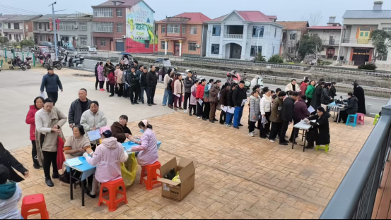 3月4日上午,杜山市场监管所在杜山镇旭东村大舞台设立临时体检点,开展健康证集中办理“一站式”便民服务,打通服务群众“最后一公里”。周一畅 摄