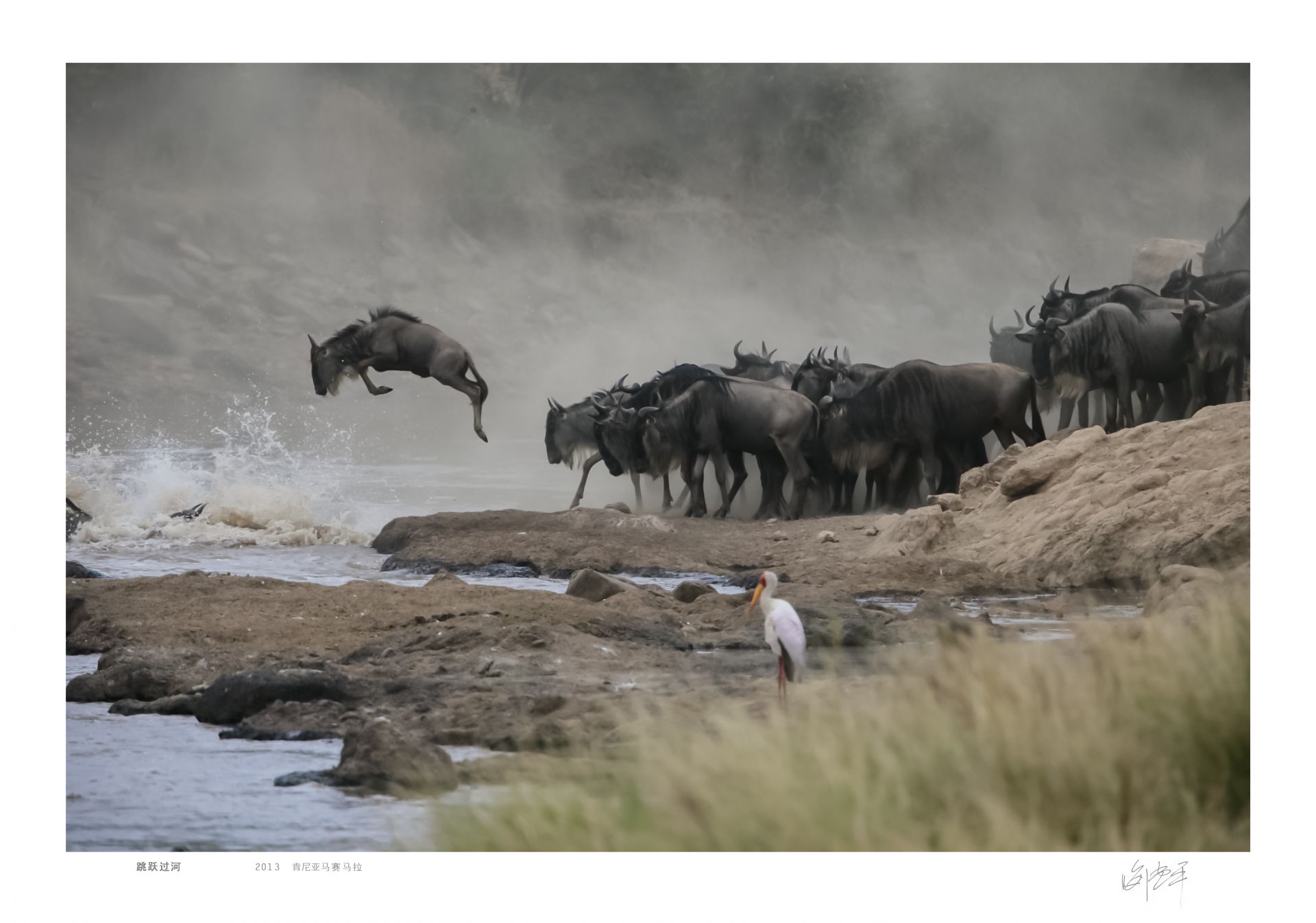 一年一度的角马迁徙。在湍急的河流上,飞跃横渡。即使在非洲野生动物迁徙季,角马过河依然是难得一遇的。