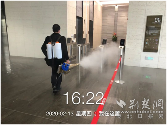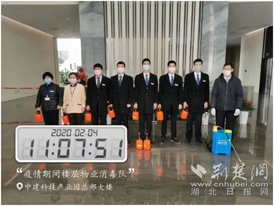 中建科技产业园总部大楼物业消毒队。(通讯员供图)
